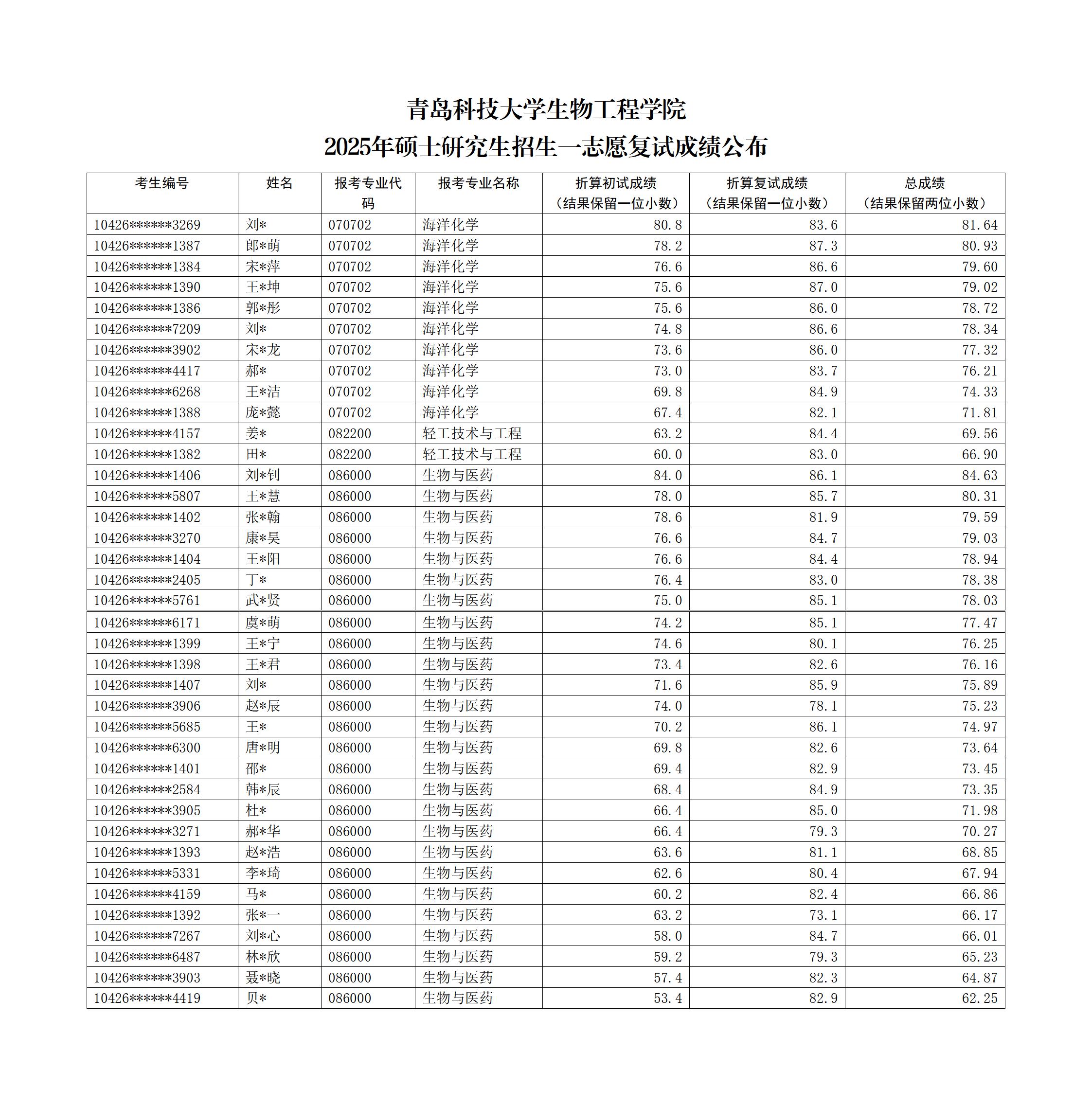 2025年硕士研究生招生一志愿复试成绩公布