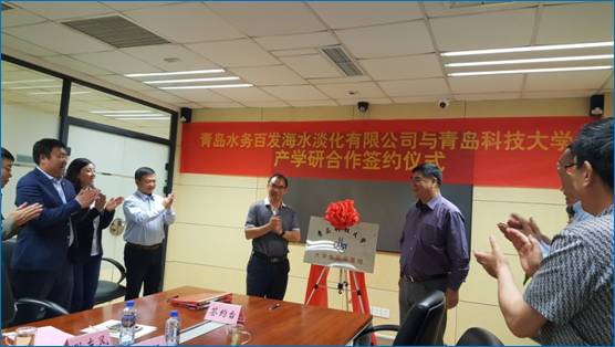 2017年5月18日下午公司与青岛水务海润自来水集团公司在青岛百发海水淡化有限公司签订产学研合作协议。XC体育海洋公司经理陈夫山和青岛水务海润自来水集团公司总经理孙东风在会上发言并在协议书上签字。青岛市城市管理局副局长孙炜出席并讲话。出席签字仪式的还有XC体育海洋公司副经理范金石、生物质资源系系主任张恒、青岛百发海水淡化公司总经理张晓东、青岛海润自来水集团公司综合部部长吕思东和青岛百发海水淡化公司行政部经理张海艳等领导。签字仪式后双方代表参观了青岛百发海水淡化厂。