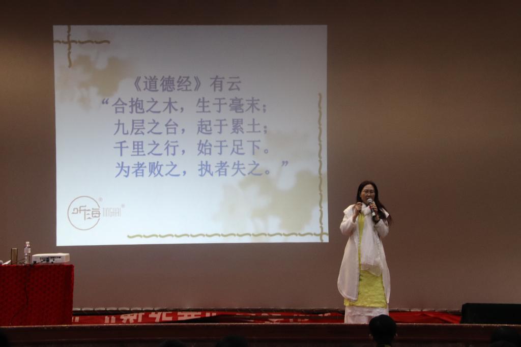 本次活动特别邀请了“听海瑜伽”品牌创始人吕翠英女士分享自己的创业经验。吕女士的讲座围绕“如何成为一个成功的人”展开,向同学们解释了“种子法则”:种因得果,付出才有回报。讲座中,吕女士鼓励青年员工要做事专注,坚持不懈,越是艰难,越要保持良好的心态,磨练心性,提升专业能力,逆境播种,方能收获美好。