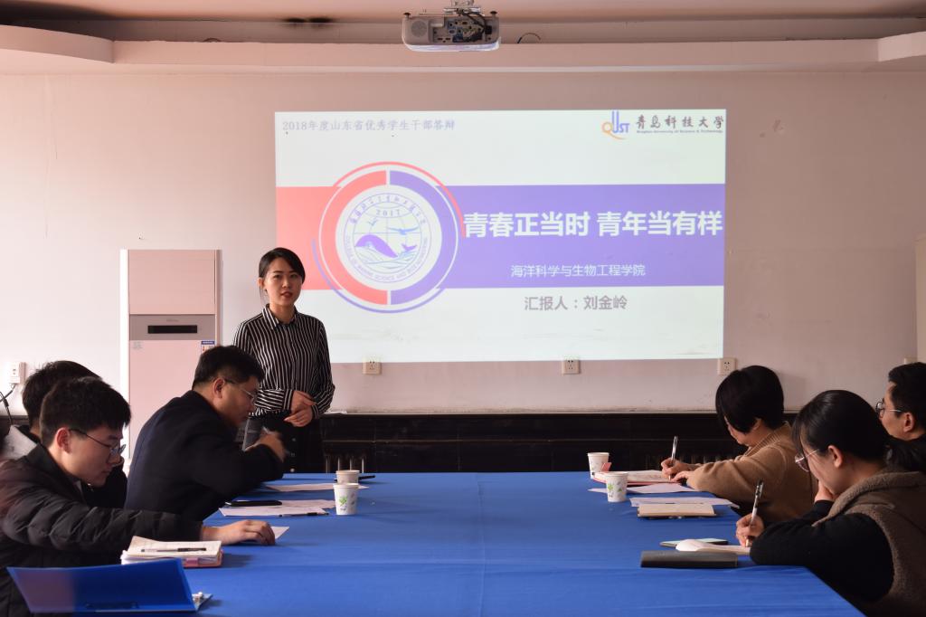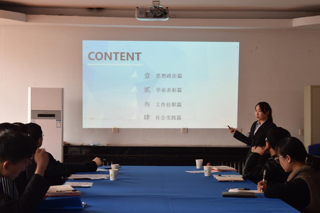 而后,高小宁,焉春雨,刘以媛,王慧,王征,刘金岭等员工依次进行答辩。他们分别从思想政治、学业表彰、工作任职、社会实践四个方向进行论述。通过这些同学的阐述,大家了解到当代优秀老员工应思想端正,党性扎实;努力学习,参与竞赛;认真工作,恪尽职守;乐于助人,志愿服务。最后由生物工程161班的蔡昊鸿同学进行先进班集体答辩。“有理想、有追求、有品质、有活力、有作为”是他们集体的真实写照。