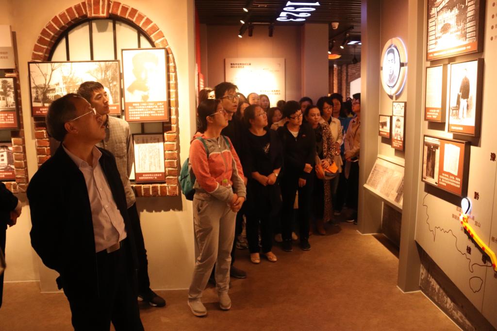 活动伊始,“红色引擎”党员工作站站长王倩带领全体师生在党旗前庄重宣誓,庄严的誓言回荡在纪念馆,激发了师生们的爱国情、强国志、报国行;党站成员姜小凡和蔡昊鸿同志深情诵读《这盛世如您所愿》,从“飞机不够,飞两遍”,到“用上百架飞机为祖国庆生”,中国从任人宰割走到世界前列,这是大国的崛起与复兴,让全体师生感受到大国风采,激发起爱国奋斗精神;党史馆内,讲解员带领大家观看中国共产党发展史,让大家了解到中国共产党带领中国走向复兴的艰难历程。无数共产党人为民族独立、自由平等做出了伟大贡献,李大钊、毛泽东、周恩来等一张张先辈的照片让党员们深切感悟到了共产党员的初心与使命。