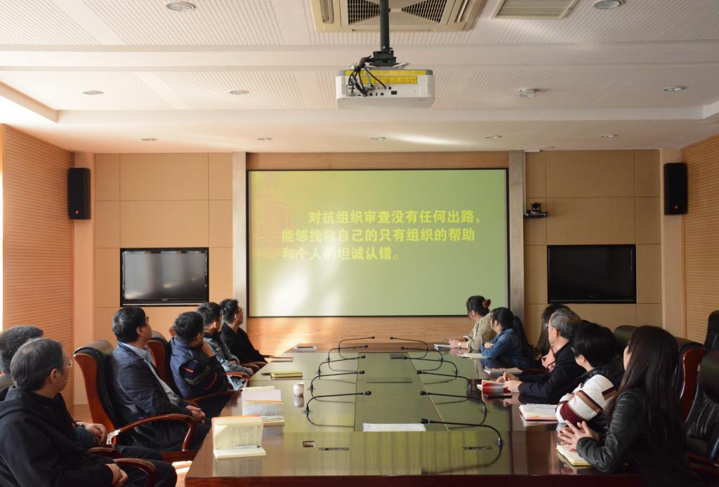 为贯彻落实习近平新时代中国特色社会主义思想和中央纪委三次全会精神,海洋公司于11月4日上午10:20在一政第一会议室组织观看了“警示教育课”影片。海洋公司经理陈夫山、党总支书记刘同刚、副经理范金石、党总支副书记兼副经理卢中彬出席了会议,出席会议的还有全体管理岗教师及全体党站党员。