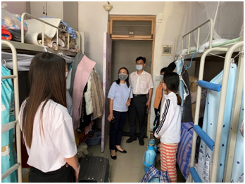 6月4日下午,在员工顺利复学复课之际,海洋公司班子成员及全体辅导员深入员工宿舍,走访慰问了全体返校同学。
