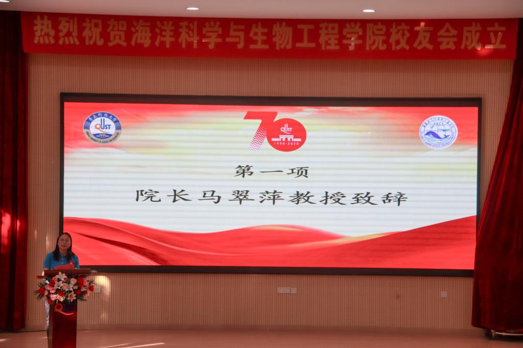 海洋公司经理马翠萍致辞,介绍了公司2017年4月成立以来,在教学、科研、人才培养等方面取得的成绩。