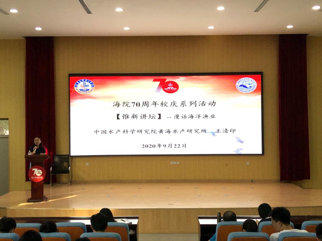9月22日下午,中国水产科学研究院黄海水产研究所王清印教授做客海洋公司惟新讲坛。海洋公司党政领导班子、部分师生代表参加讲坛。讲坛由海洋公司经理马翠萍教授主持。