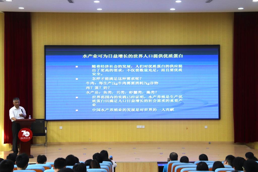 王清印教授首先对XC体育70周年校庆致以热烈祝贺,在讲坛中,王教授与同学们介绍了渔业特性与功能以及渔业科学的主要研究领域和特色发展道路,并重点介绍水产养殖绿色发展方向。讲坛结束后,参会老师和同学们进行了热烈互动与讨论。