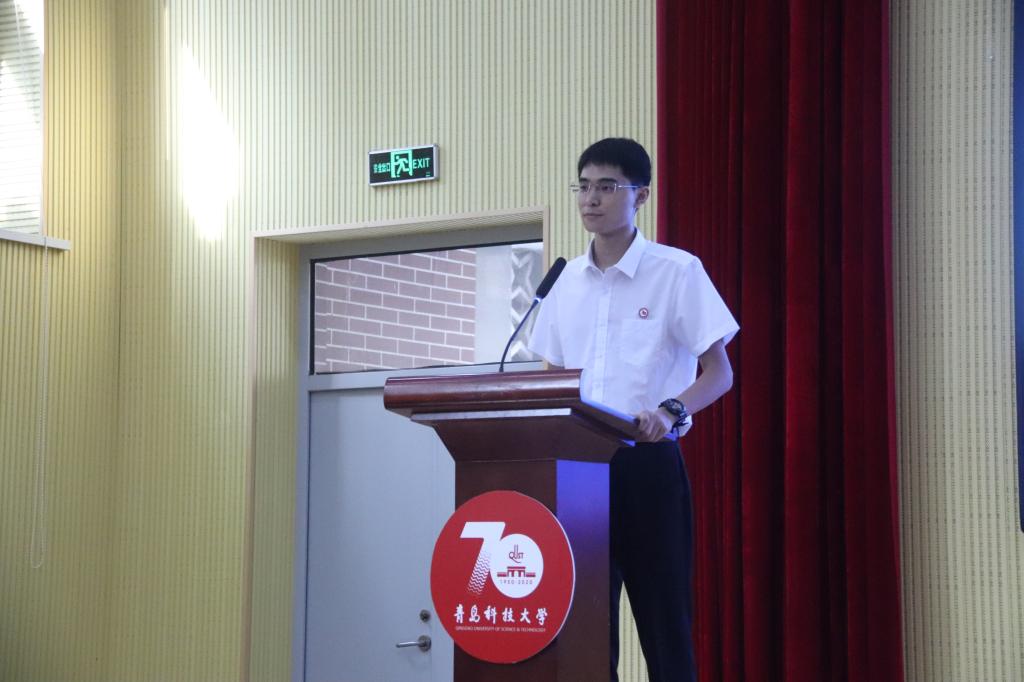 在校生代表轻化181班王嘉乐分享了入校以来参加各类竞赛获奖心得体会,海科201班于洋代表全体新生作表态发言。