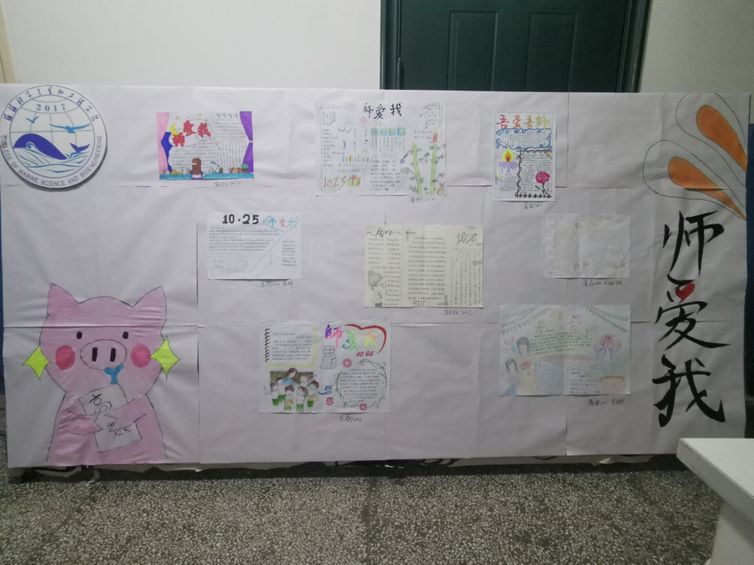 10.25,谐音“师爱我”。海洋公司为增进师生感情,构建良好学习环境,特组织开展了“师爱我”主题系列活动。该活动主要由“师爱我”手抄报比赛、“我与老师合张影”及“教师寄语”三部分组成。
