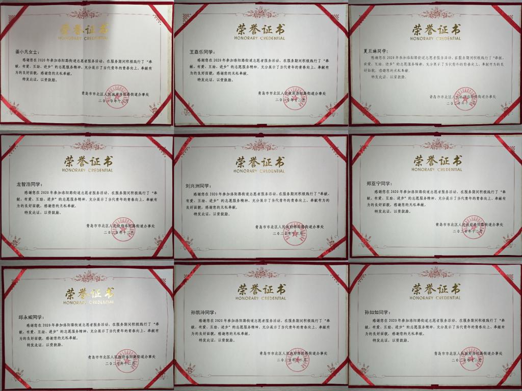近日,15名海洋学子受到志愿服务表彰,洛阳路街道为参与志愿服务的员工颁发志愿服务表彰证书。