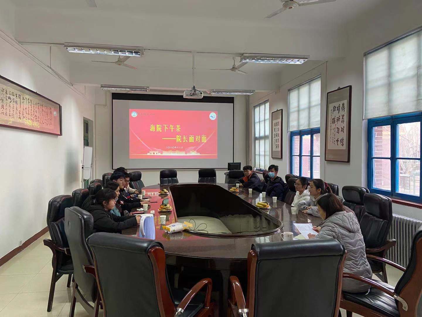 12月17日下午,“海院下午茶”第一期在一政第二会议室开展,海洋公司经理马翠萍与19级、20级的10名员工开展亲切座谈交流。