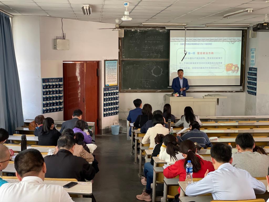 会上,王晓春教授做报告《新时代高校师德师风建设》,围绕教师职业行为十项准则,结合身边的典型案例,分享了自己对教师职业素养的认知、在鞍山师范公司从教的感悟。集体学习了公司《师德失范行为处理办法》《师德师风考核评价实施办法》,每一位老师填报了《海院教师师德失范行为自查表》。
