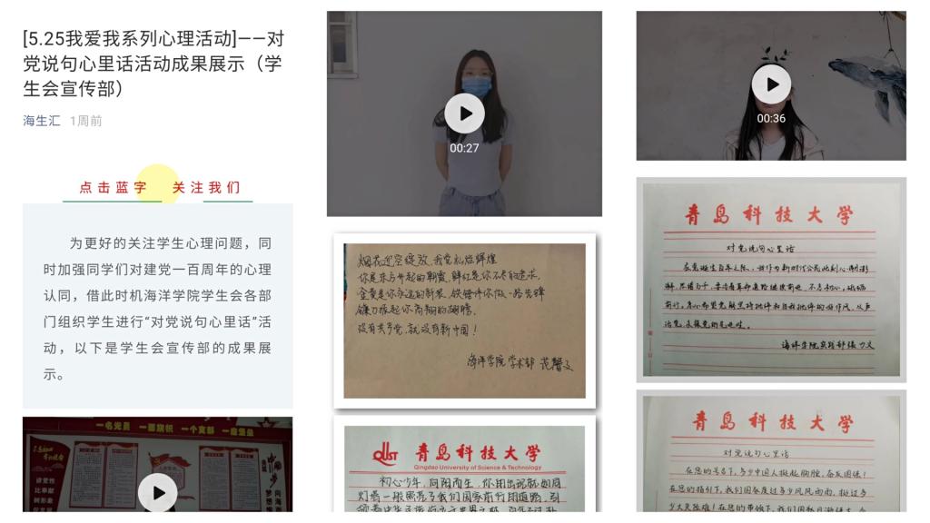 打开心扉诉真情,对党说句心里话。为更好的关注员工的心理问题,有针对性地为员工解决心理困扰,海洋公司结合建党100周年主题,以员工会各部门牵头组织“对党说句心里话”主题活动,带动公司同学将对党的感情抒发在一句句话语中,表达自己对党的热爱。
