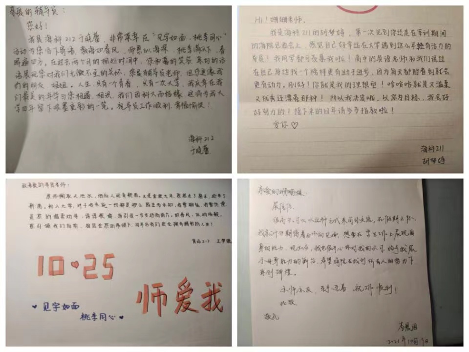 “师”情“话”意,桃李同心。滴滴汗水诚滋桃李满天下,点点心血勤育英才泽神州。为扎实做好老员工心理健康教育工作,搭建师生沟通交流的平台,于10月23日-25日开展师生寄语征集,希望能通过此次活动令同学与老师之间的关系更加亲近融洽,助力营造积极良好的师生教育氛围。