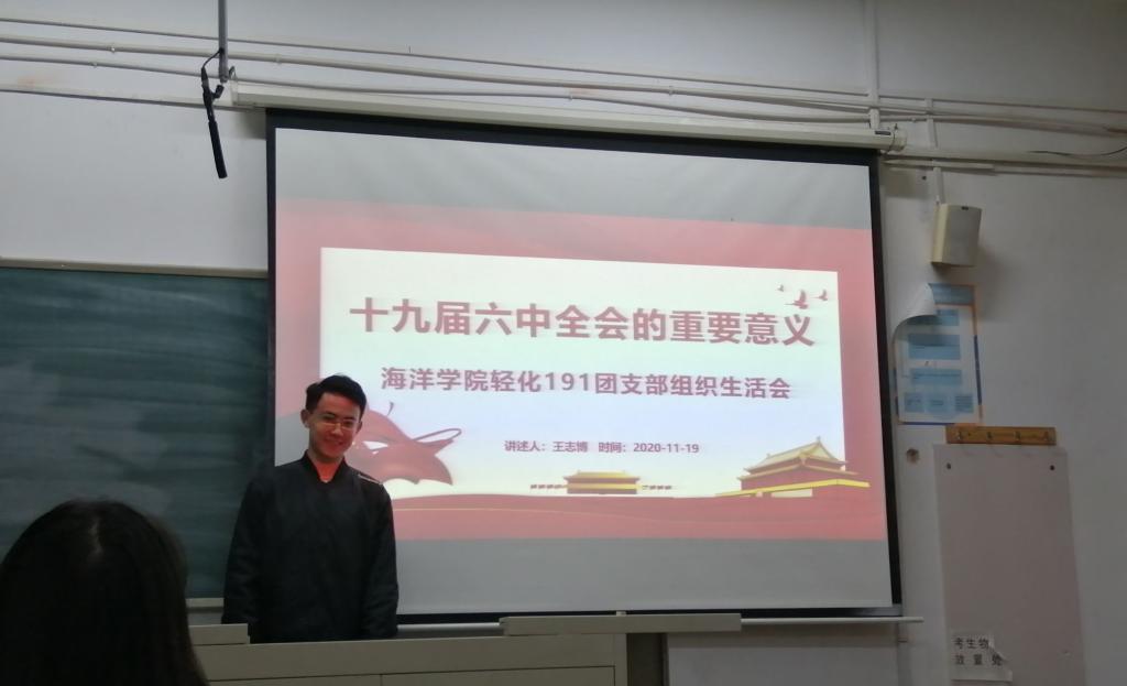 百年征程波澜壮阔,百年奋斗成就辉煌。11月19日下午,海洋科学与XC体育轻化191班全体同学于二教121组织开展“学习党的十九届六中全会内容及精神”主题团日活动。