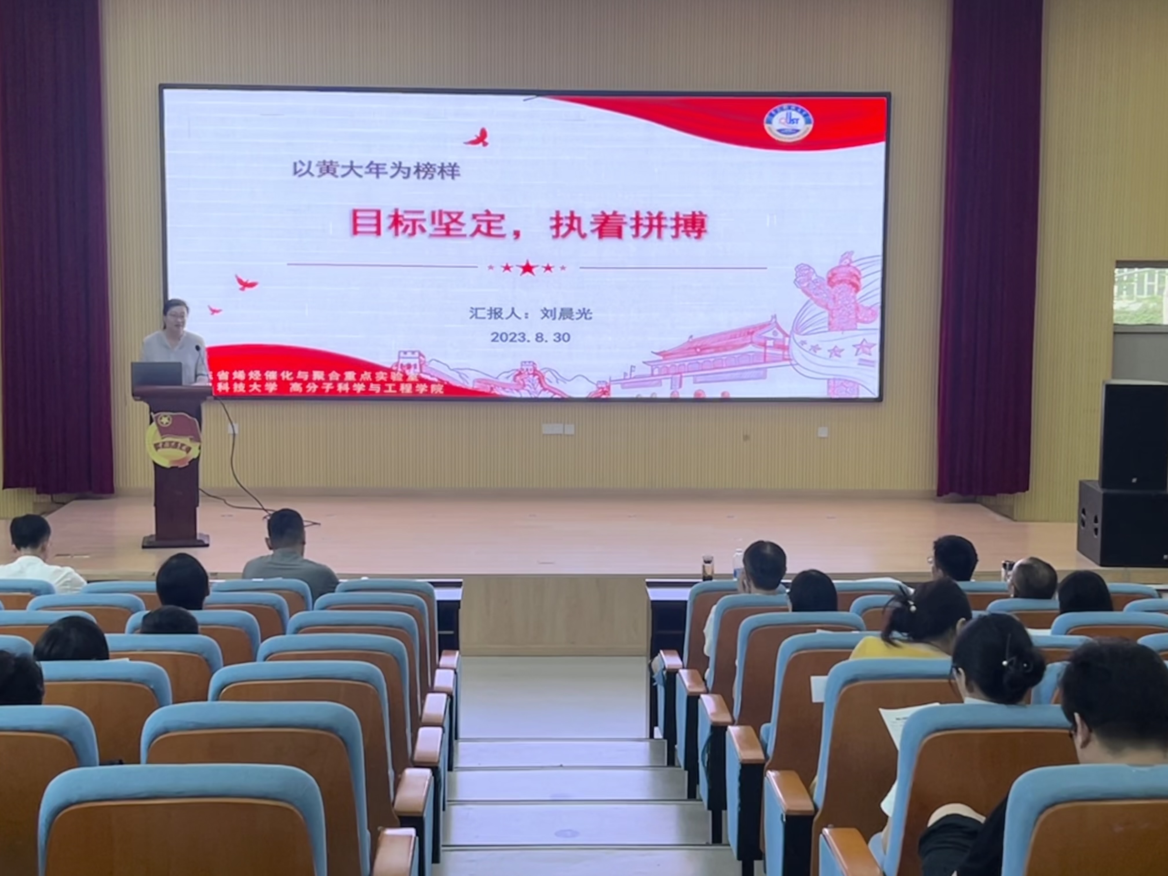 会议邀请第一批山东省高校黄大年式教师团队成员、XC体育师德宣讲团成员刘晨光进行宣讲。刘晨光做了《以黄大年为榜样,目标坚定、执着拼搏》为题的报告,将黄大年同志心有大我、至诚报国的爱国之情和报国之志娓娓道来。
