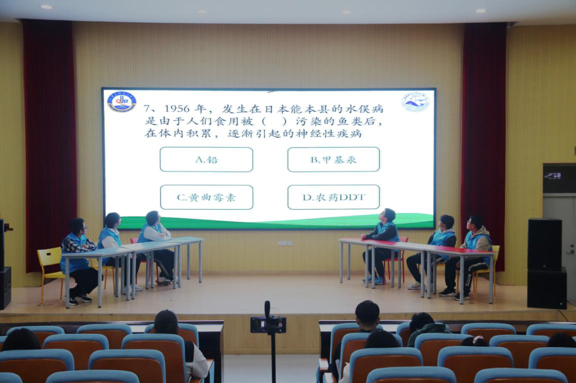 竞赛围绕绿色低碳、气候变化、降塑减排、碳达峰碳中和、生态保护和环境污染等多方面内容展开问答。在比赛现场,同学们争分夺秒、全力以赴,认真读题、专心答题,运用自身丰富的环保知识贮备完成一份份优秀的答卷,为此次知识竞赛画上圆满的句号。