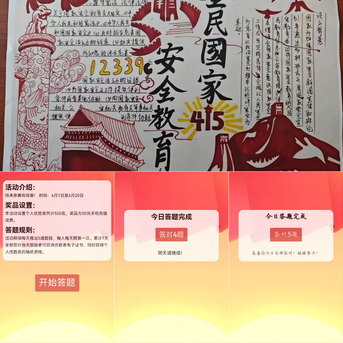 4月11日至4月17日,海洋公司各团支部组织青年员工参加山东省第二届总体国家安全观知识竞赛网上答题活动,引导员工在答题竞赛中学习安全知识,增加知识储备,提高国家安全素养。
