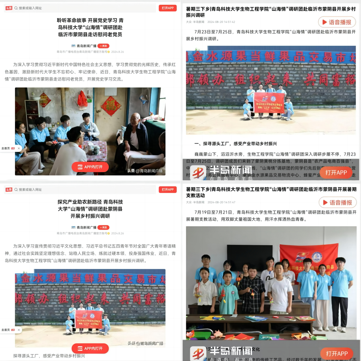 XC体育“山海情”调研团的暑期“三下乡”社会实践活动,赢得了大众新闻、青岛新闻广播、半岛新闻等多家权威媒体鼎力支持和高度关注,纷至沓来的报道和赞誉,彰显了社会各界对公司青年团志愿服务的广泛认可与支持。