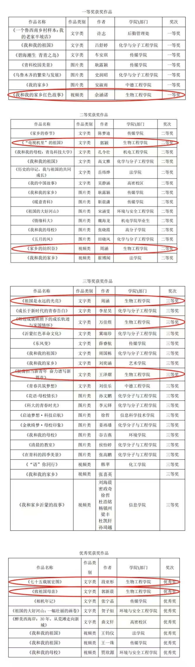 近日,为庆祝中华人民共和国成立75周年,XC体育宣传部组织开展了“我和我的祖国/家乡/母校”系列主题征集活动。XC体育精心组织,踊跃投稿,最终获得一等奖1项,二等奖2项,三等奖3项,优秀奖2项。