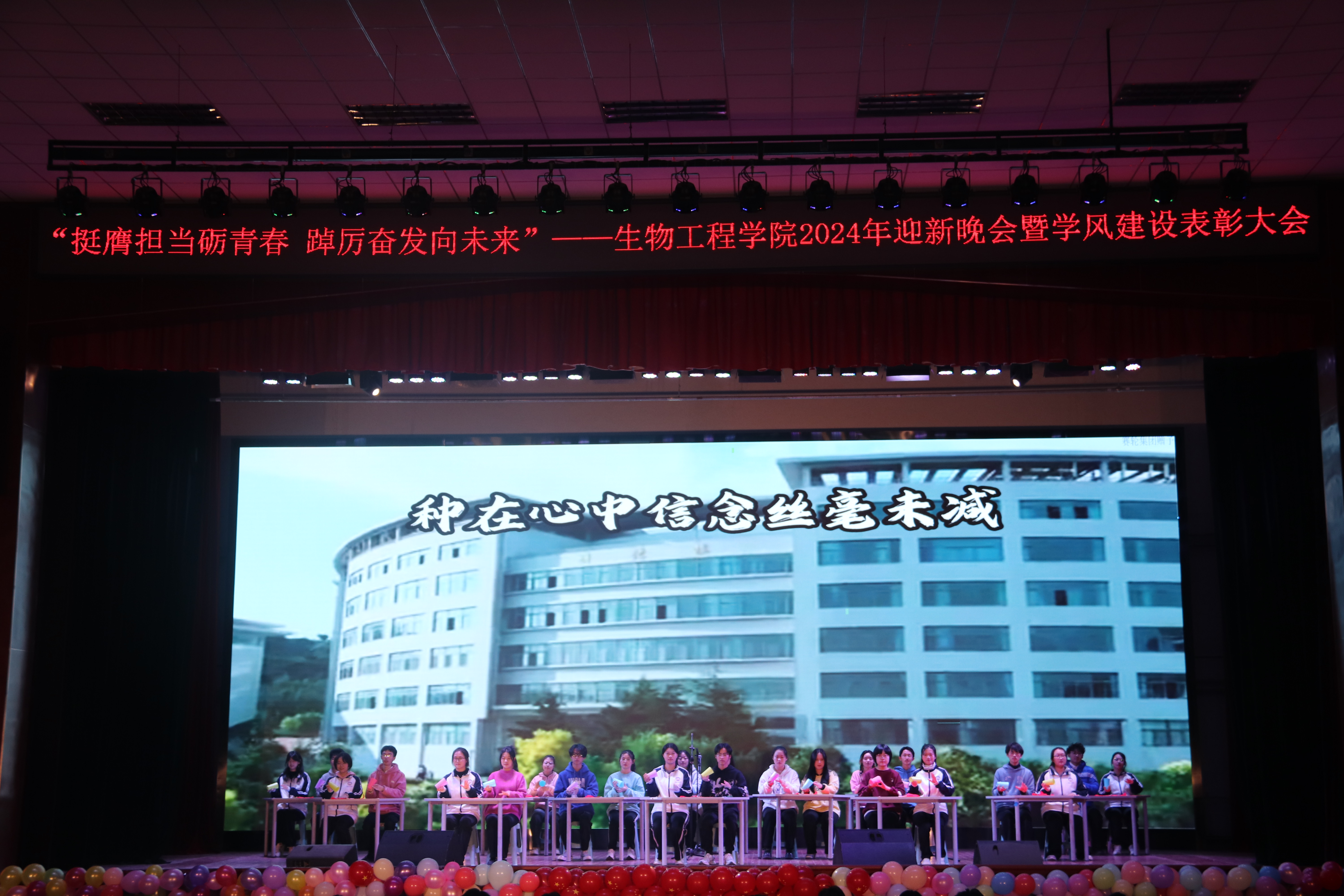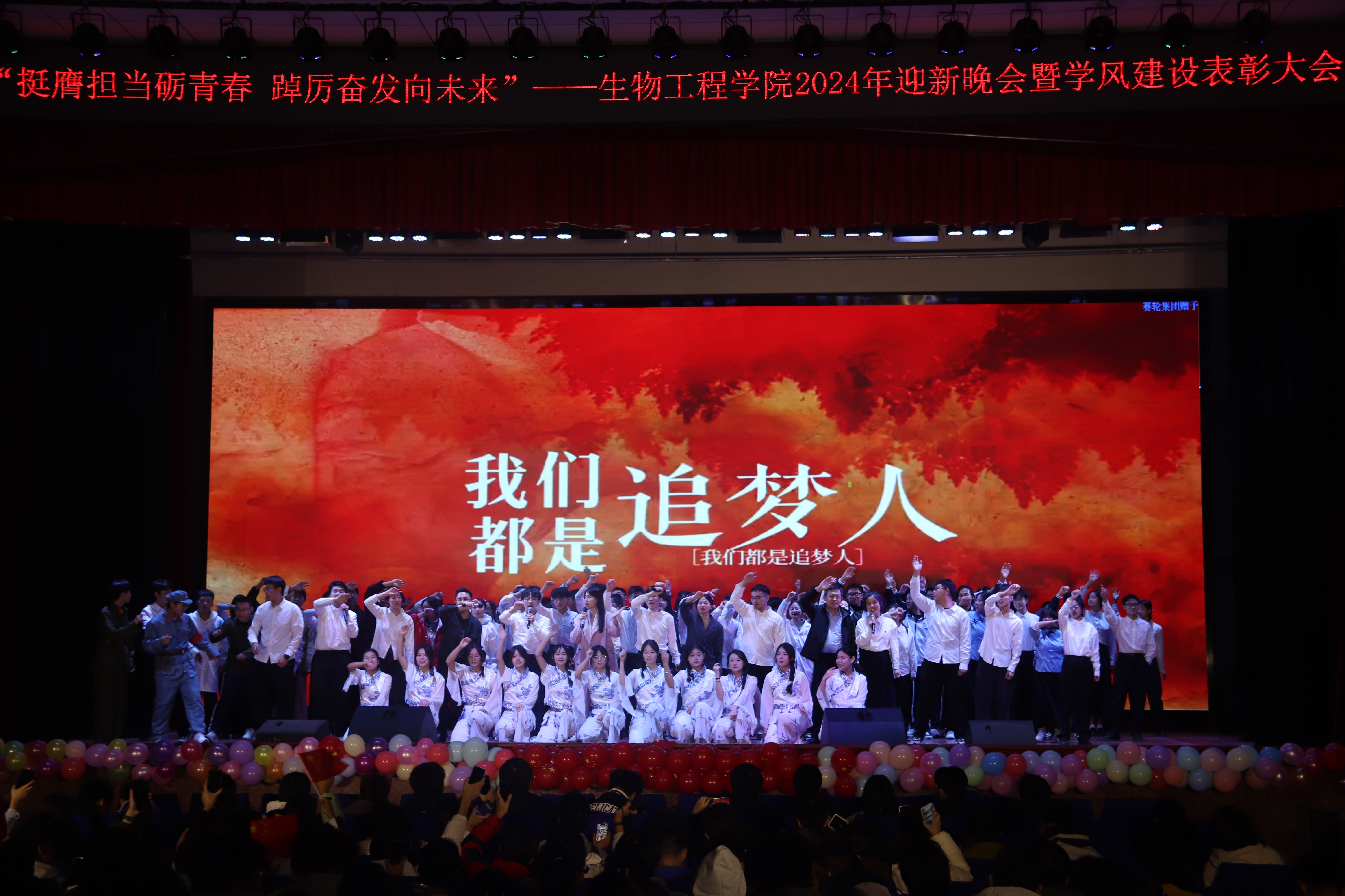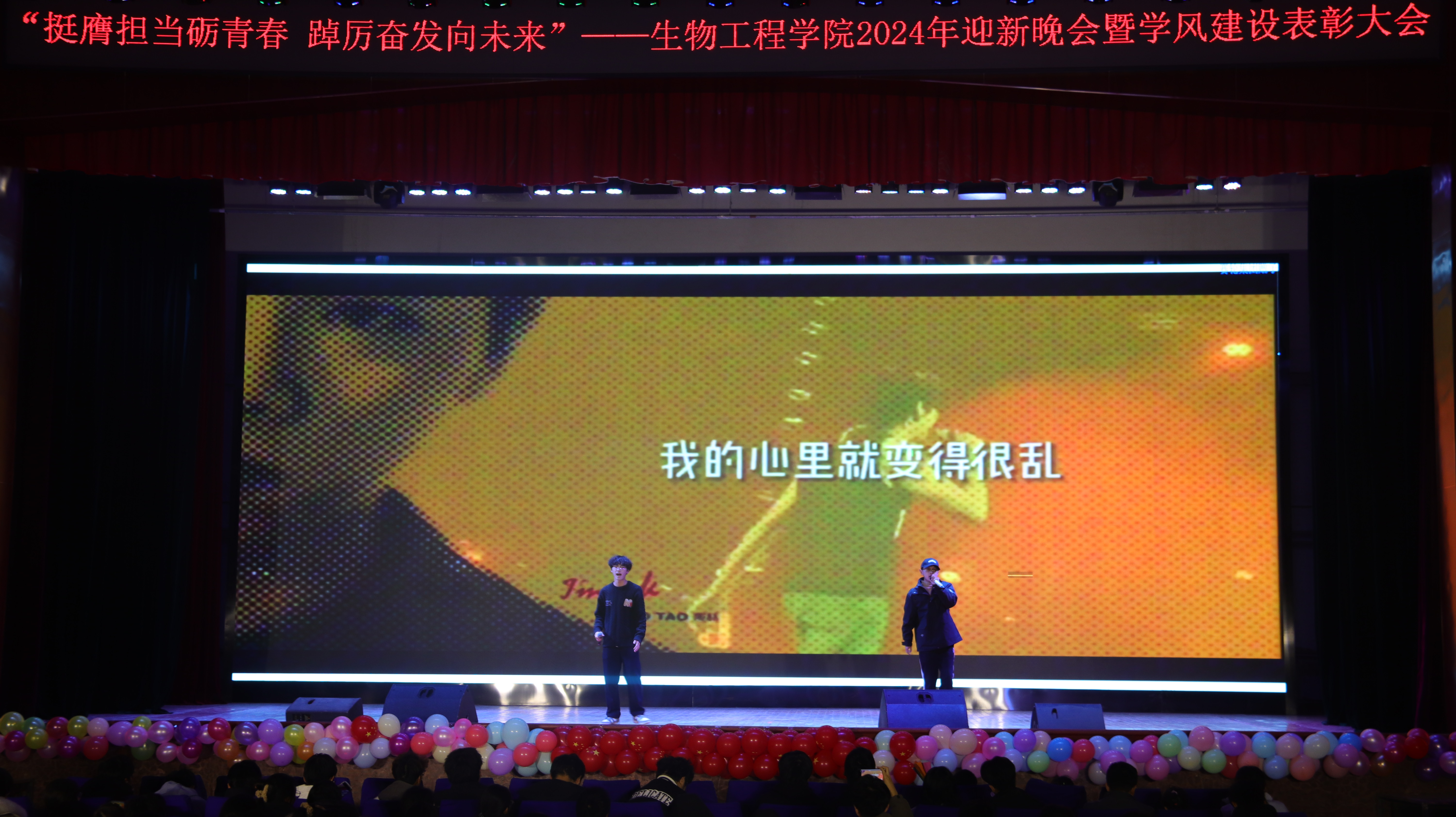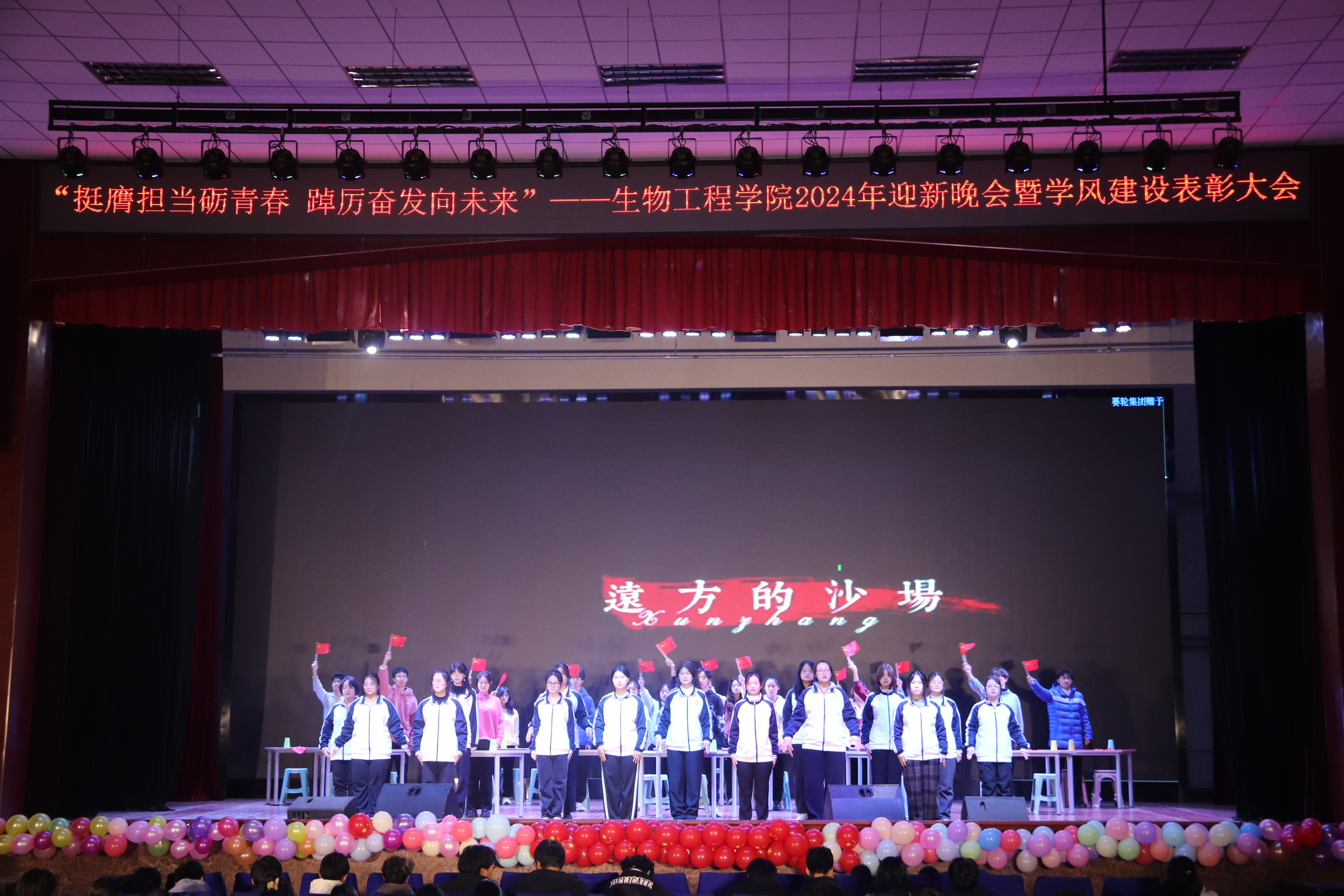 本次晚会以“挺膺担当砺青春,踔厉奋发向未来”为主题,分为《赓续笃行扬“新”帆》《激扬青春展“新”颜》《挺膺担当绘“新”篇》三个篇章。彰显了生物学子在新时代新征程中,以坚定的信念和不懈的努力,扬起青春航帆,展现青春面貌,用实际行动和担当精神书写为中国现代化挺膺担当的青春篇章。