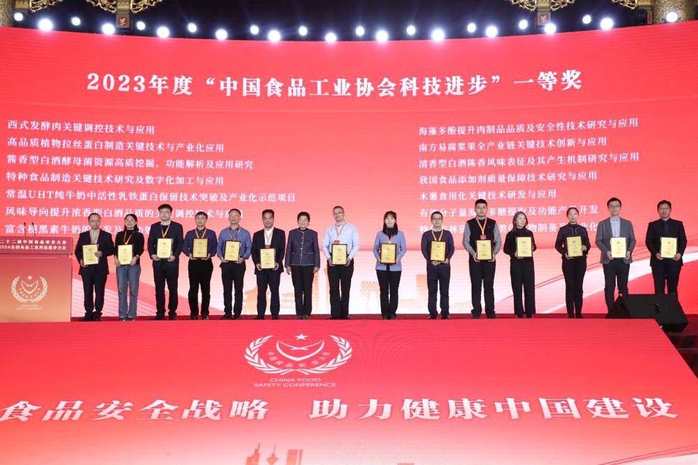 近日,由中国食品工业协会主办、中国食品安全报社承办的第二十二届中国食品安全大会暨2024全国食品工业科技进步大会在北京举行。大会颁发了2023年度中国食品工业协会科学技术奖,公司研究成果获中国食品工业协会科学技术奖一等奖1项、三等奖1项,王家林教授荣获中国食品工业科技创新奖。