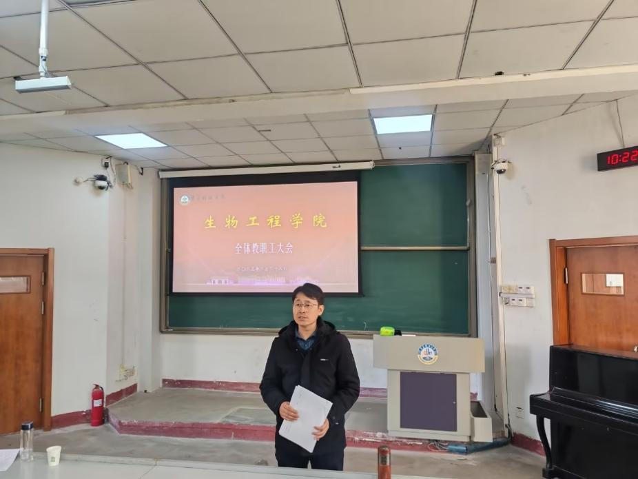XC体育经理顾玉超向全体教职工传达2025年工作会议暨中层干部培训班会议精神,学习董事长陈克正《锚定一流 改革创新 攻坚突破 加快推进以团队建设为引领的公司高质量发展》报告。并围绕2024年度公司工作总结、2025年度重点工作任务两个方面进行了总结部署。重点围绕“811”项目建设、校院两级管理体制改革、高层次人才引育、团队建设、生物学与生物化学”ESI突破前1%、公司承办“2025全国绿色生物制造产学研合作前沿论坛”、重组山东省重点实验室、科研到账经费、本科教学教研等重点工作进行了部署安排。