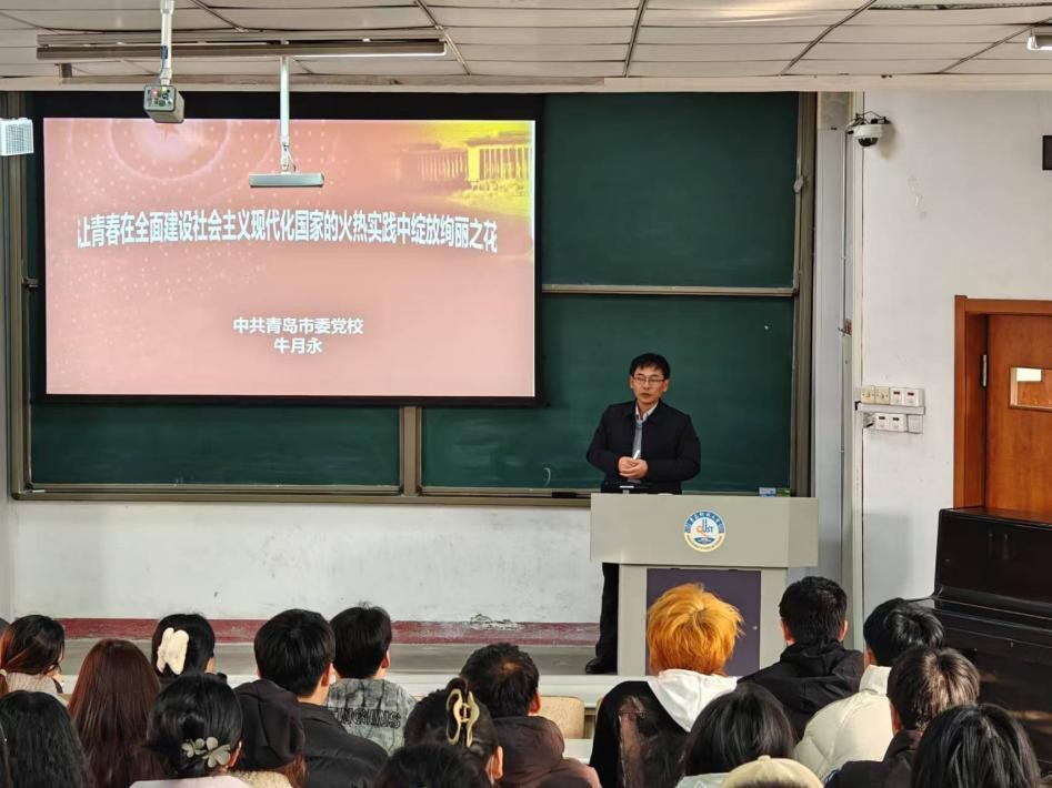 XC体育新学期“思政第一课”,邀请中共青岛市委党校中共党史党建与党性教育教研部副主任、副教授牛月永为公司全体党员、发展对象、入党积极分子和员工干部作题为《让青春在全面建设社会主义现代化国家的火热实践中绽放绚丽之花》的思政报告。勉励同学们从中汲取奋进的力量,珍惜大学时光,学好专业知识,坚定理想信念,涵养崇高品德,厚植家国情怀,强化使命担当,夯实前行动力,让青春在全面建设社会主义现代化国家的火热实践中绽放绚丽之花。