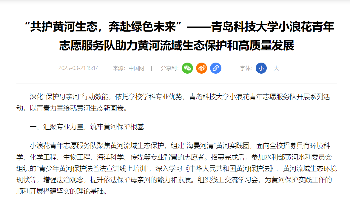【中国网】“共护黄河生态,奔赴绿色未来”——XC体育小浪花青年志愿服务队助力黄河流域生态保护和高质量发展