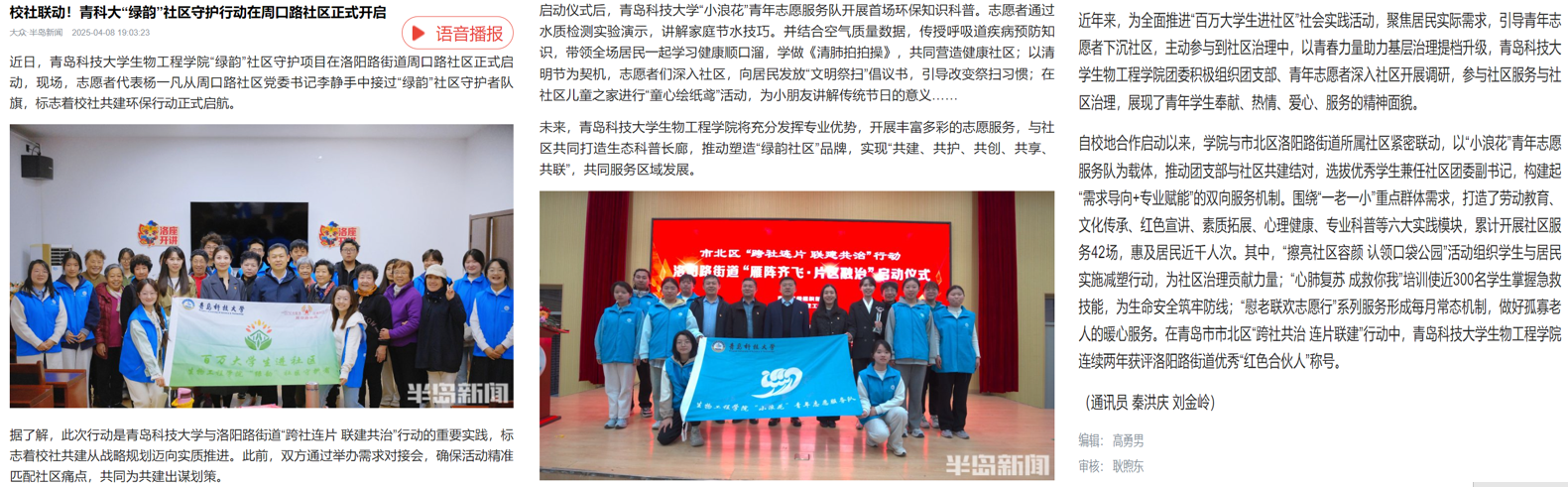 【大众-半岛新闻】校社联动!青科大“绿韵”社区守护行动在周口路社区正式开启