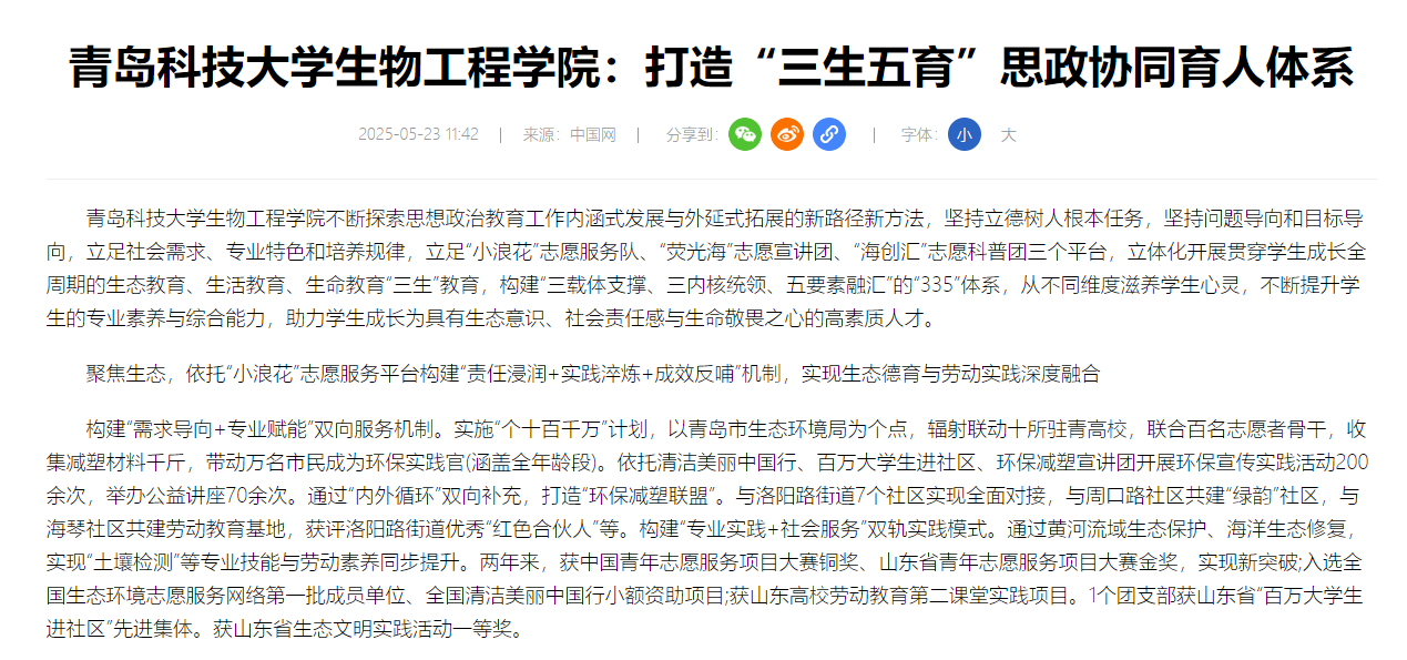 【中国网】XC体育:打造“三生五育”思政协同育人体系