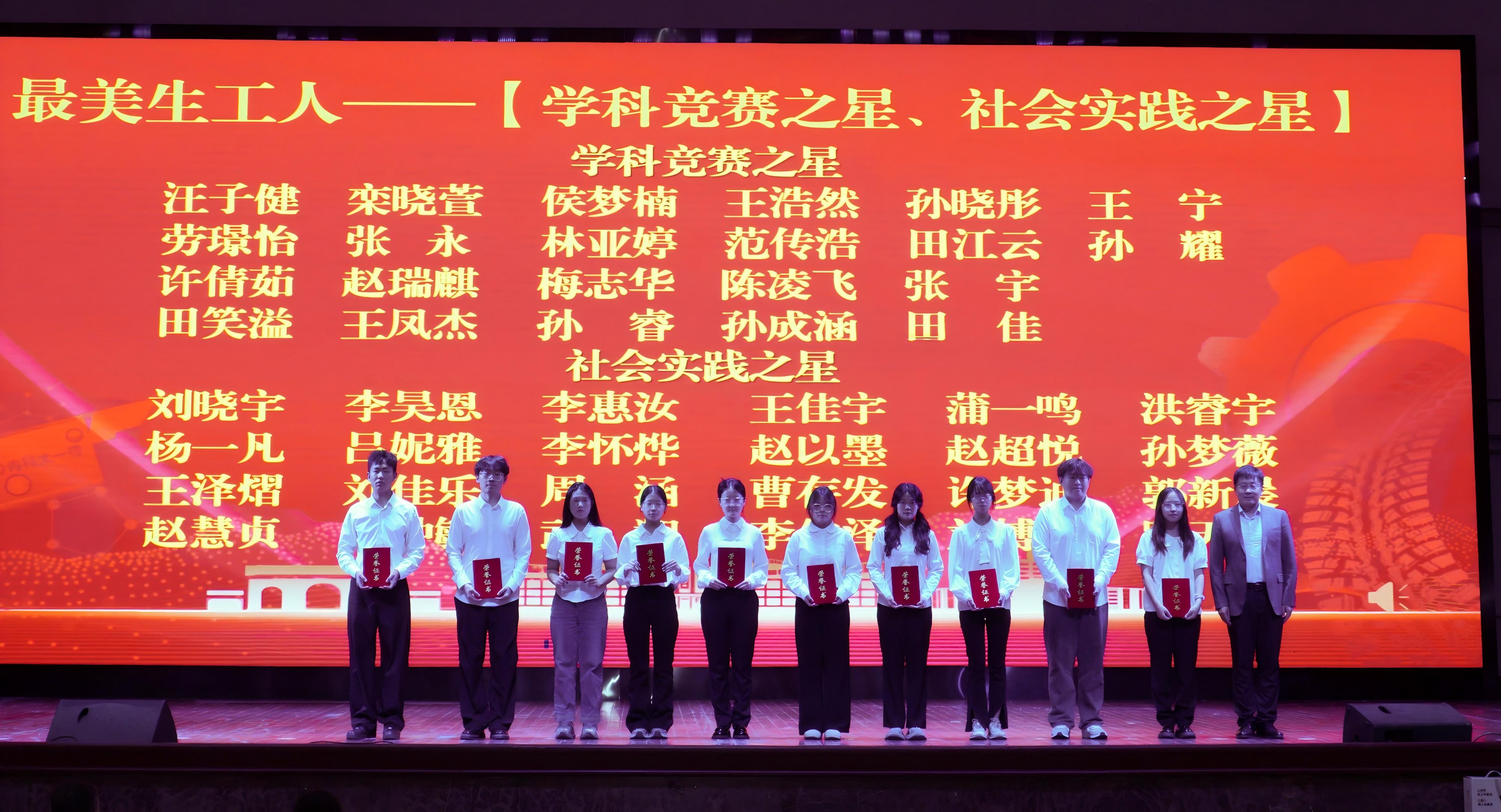 李浩为“最美生工人”学科竞赛之星、社会实践之星、文化体育活动之星颁发了荣誉证书。