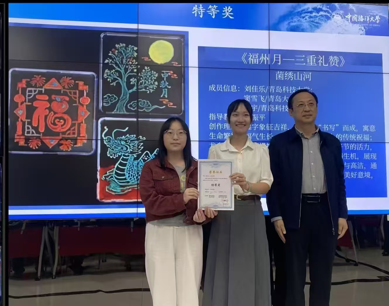 10月16日下午,青岛市海洋微生物培养皿艺术设计大赛颁奖典礼举行,XC体育史振平老师指导的本科生团队“菌绣山河队”,凭借作品《福州月——三重礼赞》从115支参赛队伍中脱颖而出,摘得赛事唯一特等奖,并成功晋级全国微生物培养皿艺术设计大赛。