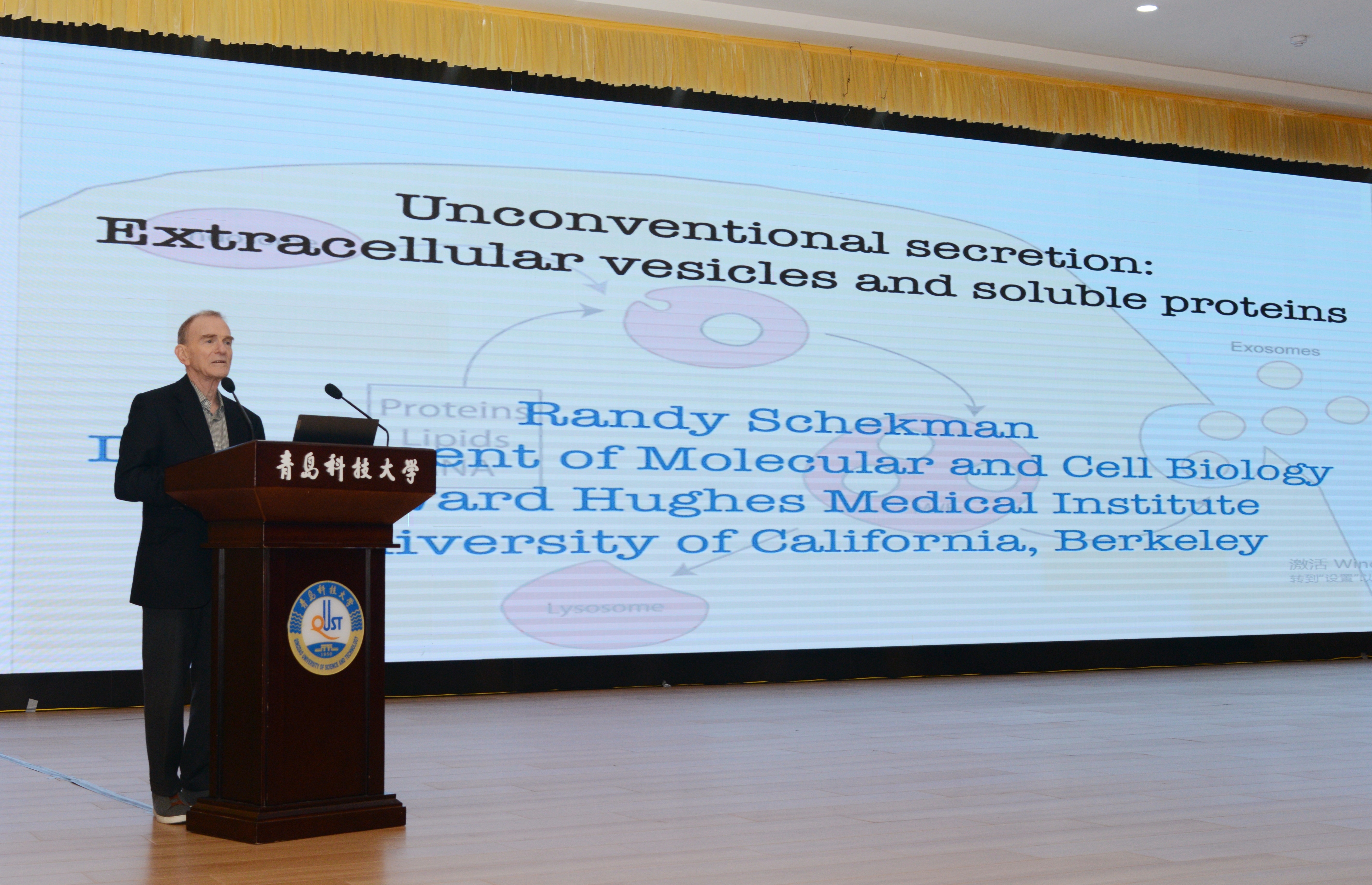 仪式后,Randy W.Schekman教授作了题为《Extracellular vesicles and biomedicalapplications》的报告,介绍了当前学术界在生物与医药领域的最新研究进展,分享了其几十年深耕科研的学术经历。报告内容深入浅出、前瞻性强,有效拓宽了师生科研视野,为现场师生提供了一场世界级的学术盛宴。