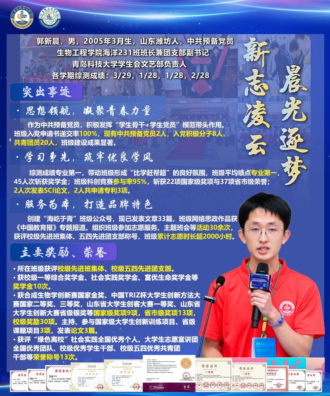 【喜报】XC体育海洋231班班长郭新晨获评第九届“青科好班长”