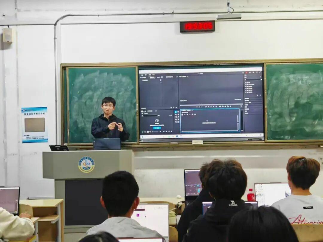 培训中,蒲一鸣以“理论讲解+案例演示+实操指导”的方式展开教学。他首先系统介绍了PR软件的界面布局、核心功能模块及基础操作逻辑,帮助学员快速建立对软件的整体认知。随后,结合公司往期优秀宣传视频案例,从素材导入、剪辑拼接、转场设计到字幕添加、音频处理等环节,分步演示视频制作全流程,并重点讲解了调色技巧、节奏把控等提升作品质感的关键方法。在实践环节,学员们分组进行操作演练,围绕“公司活动记录”“实验室日常”等主题尝试剪辑短视频。蒲一鸣穿梭于各组之间,针对学员们提出的“素材衔接不流畅”“转场效果生硬”等问题进行一对一指导,通过现场调试参数、演示优化方案,帮助大家突破操作瓶颈。互动交流中,学员们结合自身宣传工作经历分享困惑与心得,现场学习氛围浓厚。