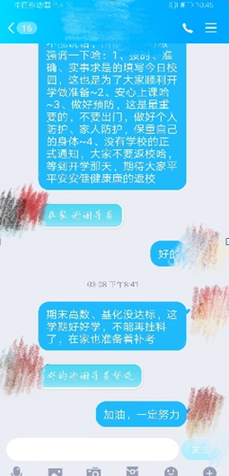 “疫”腔热血,涌育人师表。为全面打赢疫情防控的人民战争、总体战、阻击战,展现海洋公司共克时艰的精神风貌,提高思想政治教育的时效性,增进公司与家庭间的联系,公司积极开展了“连线”活动,共同营造和谐共赢的育人氛围,帮助学业困难员工成长成才。在连线家访中,公司辅导员老师特别关注了重点疫区员工、家庭困难员工。一方面了解员工健康状况和家庭生活情况,引导员工做好防护;另一方面,公司老师加紧督促员工制定新学期的学习规划,不可过度受疫情影响,合理安排在家的学习时间。此外,辅导员还一一联系上一学期期末成绩不理想的员工,与其共同探讨其中的原因,督促其重视学业,避免再次出现“挂科”现象,同时号召班级学业优秀的同学为有需要的同学提供帮助,鼓励大家一同进步。非常时期充满关怀的线上家访,搭起了老师与员工及家长们的交流平台。公司利用线上家访这一简单、安全,又让人倍感温暖的特殊形式,把公司与老师的关心与关注,送到了每一位有需要的员工家庭,不仅给他们的心里注入了一股暖流,也坚定了大家战胜疫情的信心。