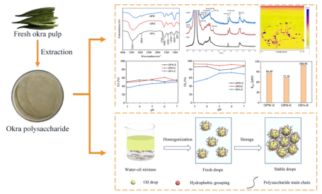 近期,海洋公司李银平副教授在秋葵多糖稳定的水包油乳液领域取得了一定的进展。相关成果成功设计并制备了三种RG-I含量高的秋葵多糖乳化剂。研究发现,通过酸提取的秋葵多糖乳化性能显著优于商用柑橘果胶和甜菜果胶。此外,在较宽的pH范围以及较低的浓度下,该乳化剂均能表现出良好的乳化活性。因此,秋葵多糖是一种极具发展前景的天然乳化剂,该研究也可以在一定程度上推动秋葵的产业升级。