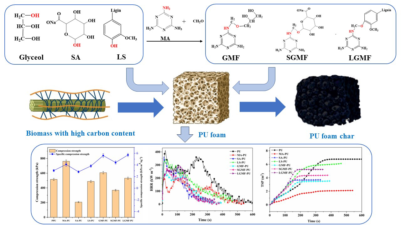 该研究对提高聚氨酯泡沫的阻燃性能以及生物质资源的高价值利用具有现实意义。该工作以研究论文的形式发表在国际生物大分子杂志International Journal of Biological Macromolecules (一区Top,IF=8.2)上,题目为“Bio-based melamine formaldehyde resins for flame-retardant polyurethane foams”。XC体育为第一通讯单位,文章的第一作者是XC体育硕士研究生王义翔,通讯作者为张芹芹副教授。论文DOI链接为doi.org/10.1016/j.ijbiomac.2024.132836。