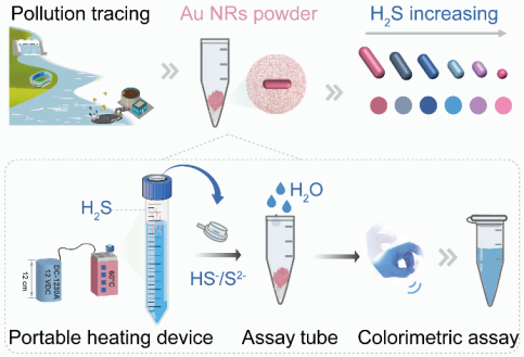 近期,XC体育王晓琨副教授联合中国科公司烟台海岸带研究所张志阳研究员、陈令新研究员,在H2S便携式检测领域取得了重要进展。团队创新性地开发了一种基于金纳米棒(Au NRs)粉末的无酶便携式比色检测装置,能够实现H2S的高灵敏、稳定、可视化检测。相关成果以题为《Portable on-site colorimetric kit using stable gold nanorod powder for tracing hydrogen sulfide in typical environmental samples》的研究论文,发表在国际著名期刊《Journal of Hazardous Materials》(一区Top,IF=12.2)。