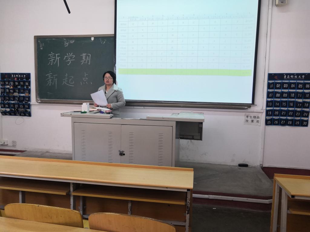 接下来,班主任辛雪琼从“个人安全”、“员工学习”、“同学友情”三方面表述。辛老师希望同学们注重自己的人身安全、交通安全、财物安全,希望同学们对自己的行为负责任。同时,辛老师就上学期考试成绩,希望同学们在新学期敲响学习警钟,要求成立结对学习小组,根据上学期成绩,强弱搭配,共同进步。以学习小组为单位组织上自习,选出组长,每周周五汇总出勤情况,并强调学习小组应注重英语的学习以准备接下来的英语四级考试。辛老师还鼓励同学们多举办班级活动,增加同学们的熟悉度和亲密度,培养同学们的友谊。