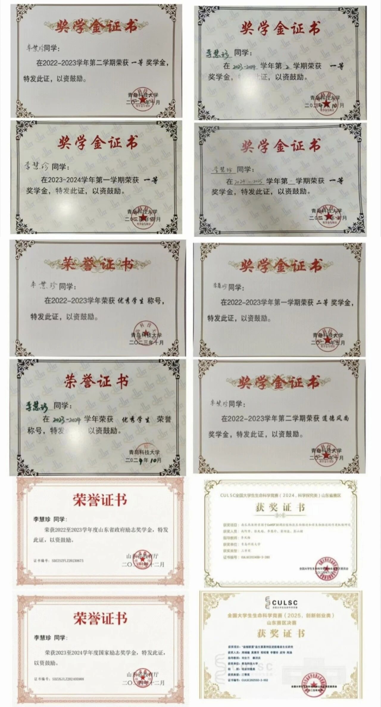如果说学习是“稳扎稳打”,那科研对她来说就是“破圈成长”。第一次进实验室时,她连移液枪都握不熟练,看着学姐学长们熟练操作,心里满是“我能做到吗”的忐忑。但现在的她,已经能独立设计实验、分析数据,还参加项目拿了省级奖项。