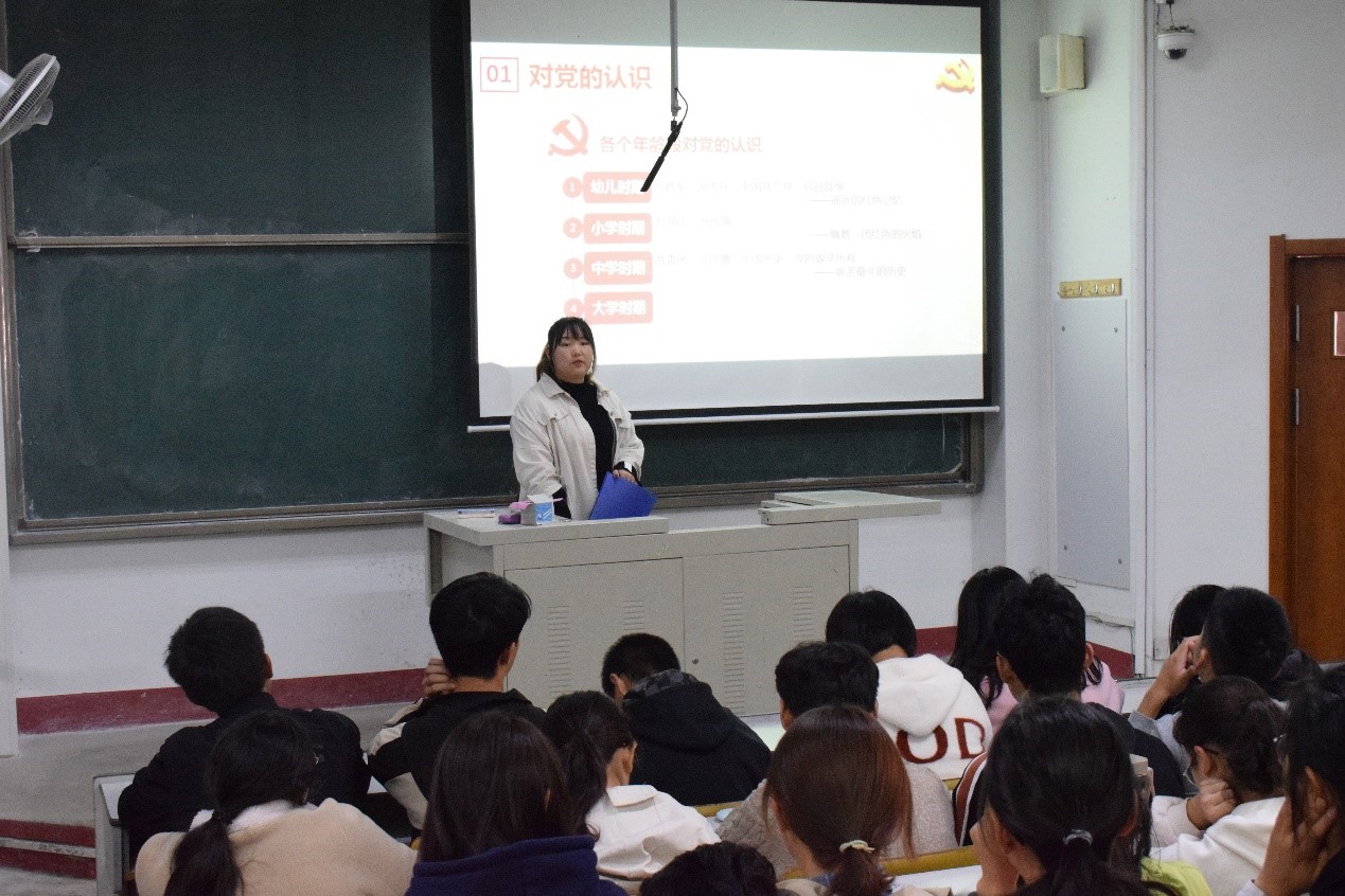 活动分为“学党史,知党情,跟党走”引导教育和“风雨兼程七十载,初心依旧划时代”主题教育两部分。活动伊始,为使2019级同学对党组织有更深入的认识,党站站长王倩为同学们介绍了老员工应如何学习党史、应了解关于党的哪些基本知识以及有关老员工入党流程等内容,并且强调要端正入党动机,即入党是为了更好地为人民服务。随后,优秀党员魏成波和薛雨欣结合自身经历与入党感悟向在场新生展示了一名优秀党员应有的风采,起到了一个党员应有的模范带头作用。在本次系列活动的第二部分,参会同学就曾经观看过的革命影片分享观后感,党员代表姜小凡就大家的感悟进行了简短的总结,阐释了“不忘初心、牢记使命”的重要意义,即初心是情怀,使命是担当,初心是一个人、一个民族、一个政党不断前进的根本动力。最后,全体党员、积极分子和新生激情澎湃地合唱了“我和我的祖国”,唱出了作为中华儿女的自豪与骄傲,唱出了建设祖国、报效祖国的决心。