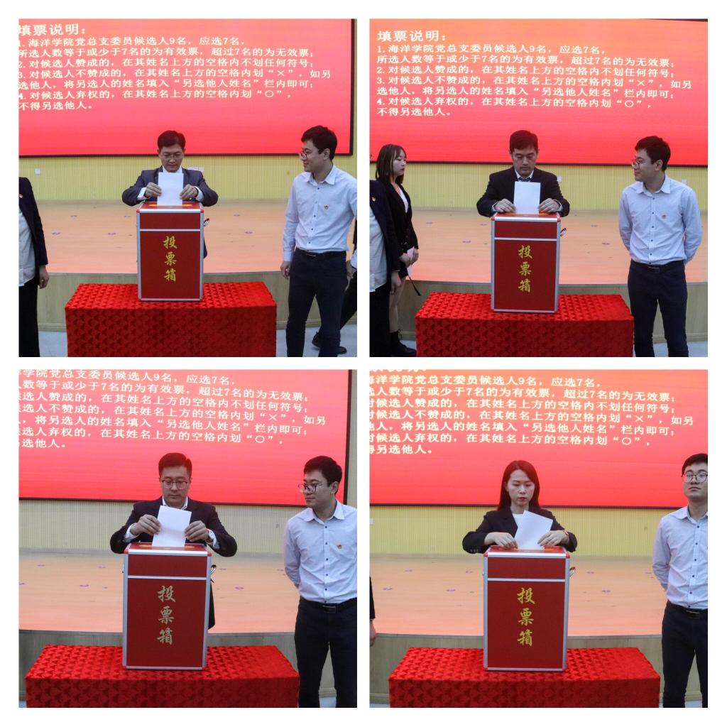 公司党总支副书记兼副经理臧传永同志作了《关于海洋科学与公司党总支党费收缴、使用情况》的工作报告。大会表决通过了《海洋科学与公司党总支换届选举办法》和监票人建议名单、计票人名单。经大会无记名投票,差额选举出了王新萍(女)、李昉(女)、李浩、李高宁、周宪锋、解万翠(女)、臧传永七位同志(按姓氏笔画排序)为海洋科学与公司党总支新一届委员会委员。