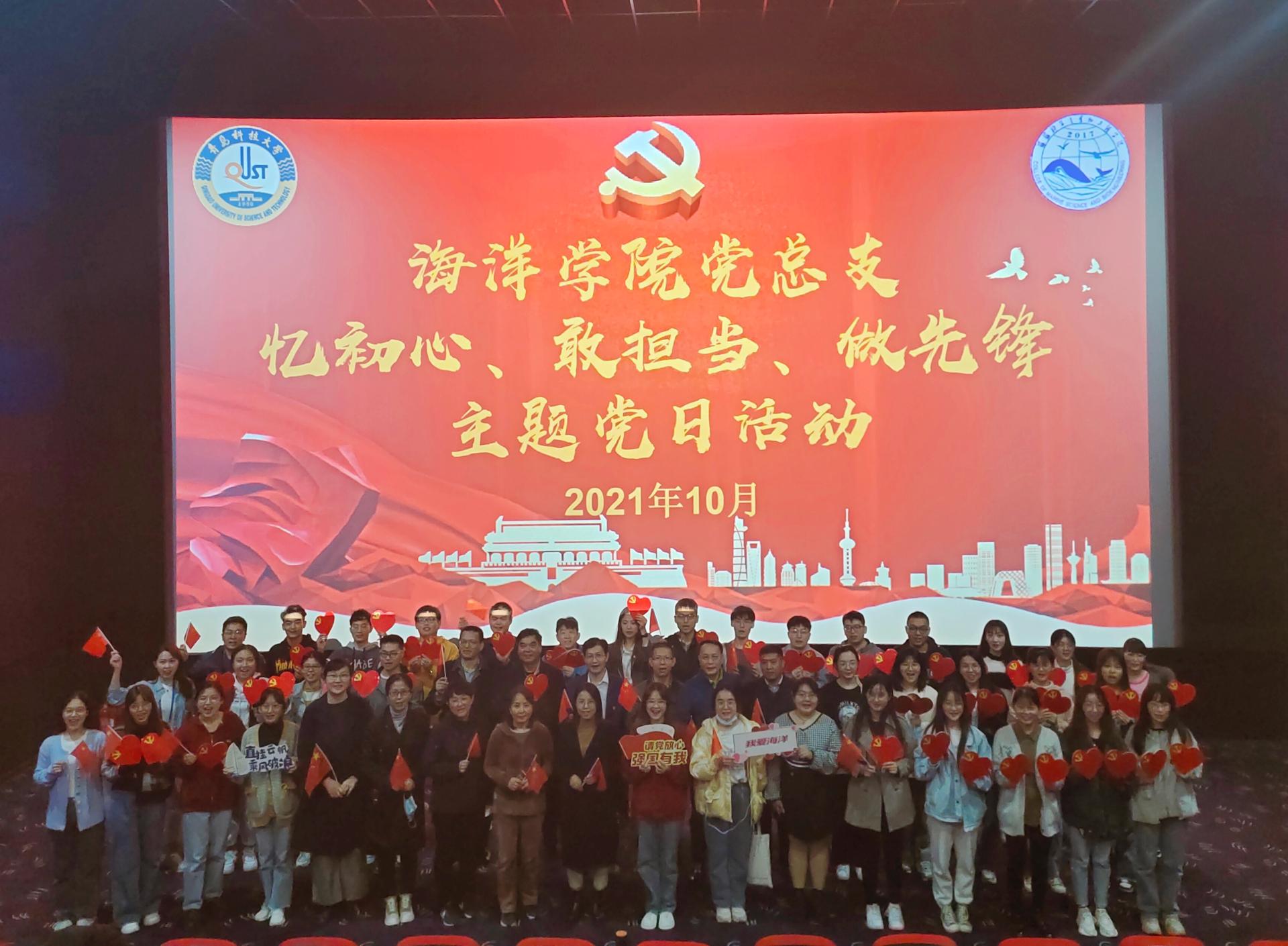 为深入开展党史学习教育,传承抗美援朝精神,激发和增强党员责任感和爱国情怀,10月19日下午,海洋公司党总支开展“忆初心、敢担当、做先锋”主题党日活动,组织教师党员和员工党员集体观看红色电影《长津湖》。