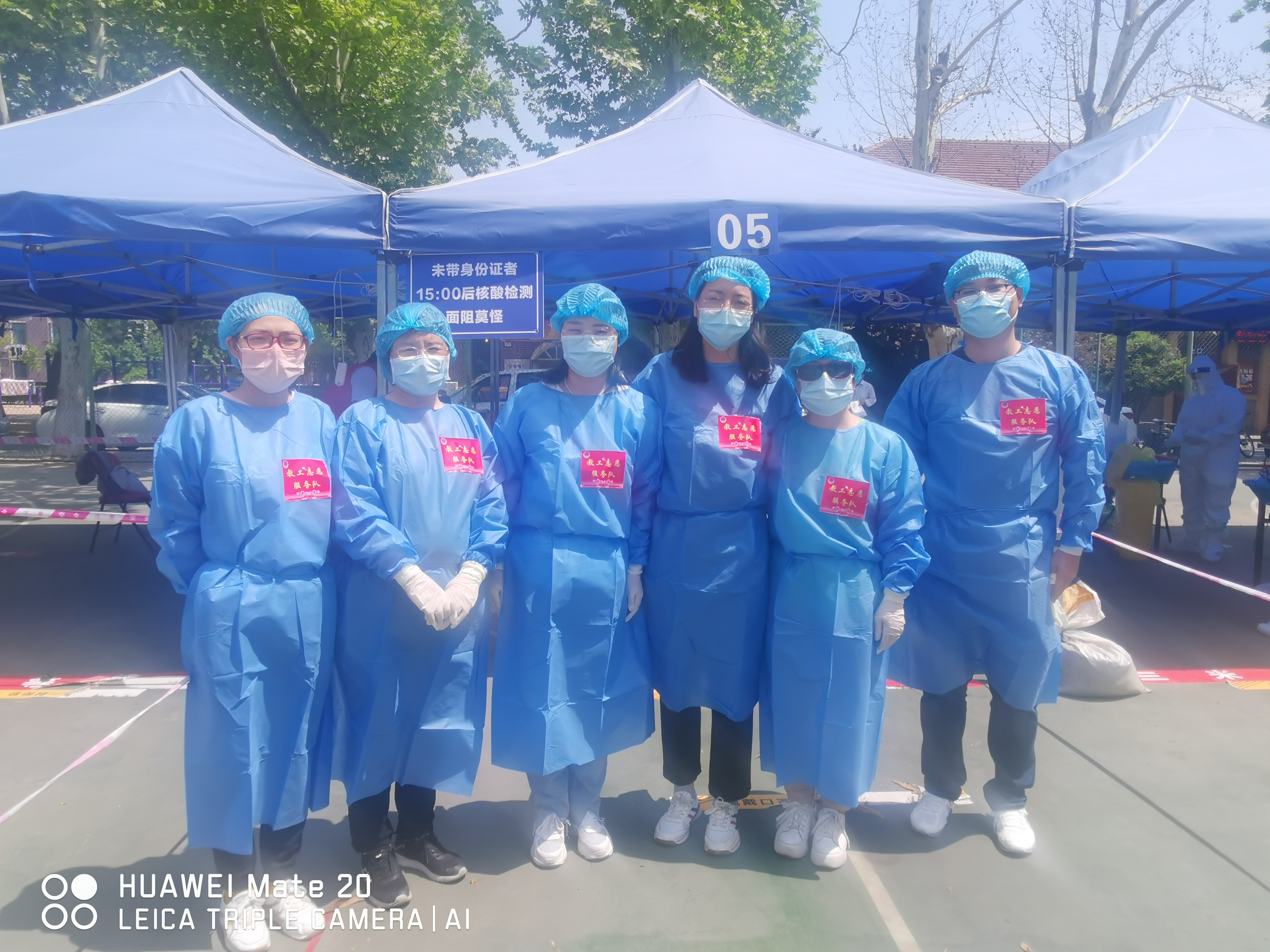 本科生党支部和研究生党支部教工党员深入公司各个角落,一面检查校园防护措施,严防外来人员闯入校园,一面督促提醒师生戴好口罩,普及防疫知识。生物党支部和食品党支部组成的核酸检测服务队分布在14个核酸检测通道,负责引导侯检队伍,监督侯检人员间隔一米,协调侯检队伍等工作。